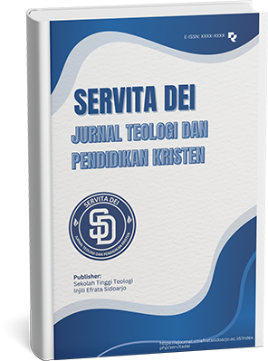 SERVITA DEI : Jurnal Teologi dan Pendidikan Kristen | Servita Dei dalam bahasa Latin berarti Pelayan Allah merupakan wadah publikasi ilmiah yang diterbitkan oleh Sekolah Tinggi Teologi Injili Efrata Sidoarjo dengan berkomitmen untuk menghadirkan pelayanan literatur yang mencerahkan, menguatkan, dan memuliakan Allah. Servita Dei: Jurnal Teologi dan Pendidikan Agama Kristen menampung semua hasil penelitian yang terkait bidang teologi dan pendidikan agama Kristen, di lingkungan Sekolah Tinggi Teologi Injili Efrata Sidoarjo, dan institusi lain yang memiliki kajian serupa, baik di dalam negeri maupun luar negeri.